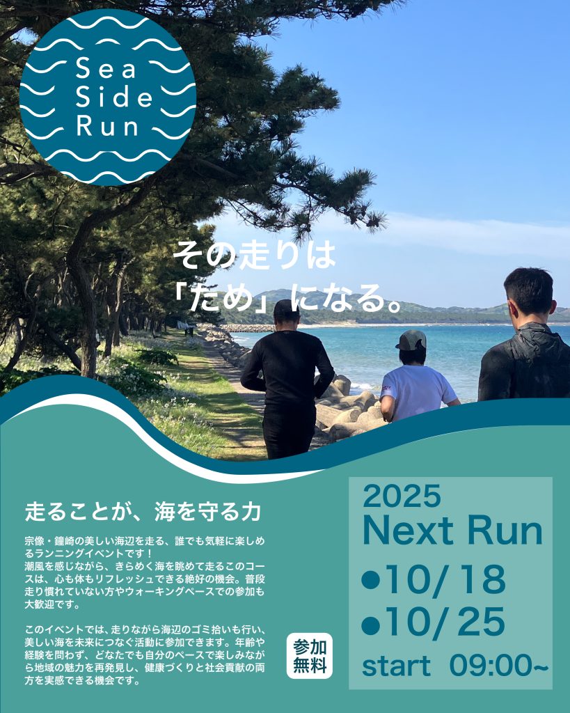 10月18、25日開催のSeasideRunへの参加者募集中です。集合場所:筋斗雲(宗像市鐘崎421-4)5分前を目安に現地へお越しください。車は拠点前に駐車いただけます。お申し込みはこちら>